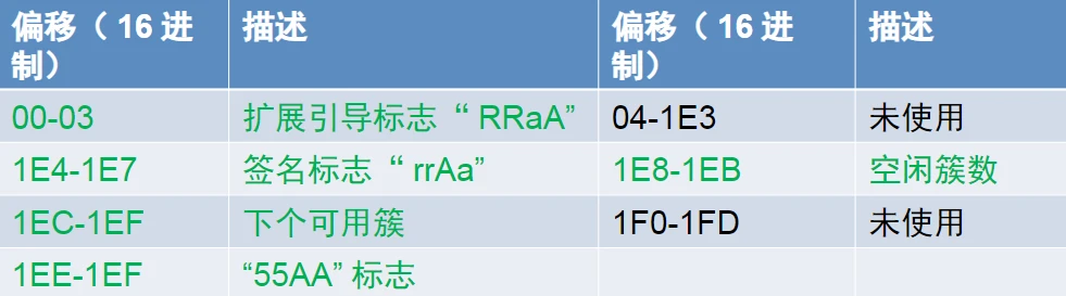- 簇:文件系统中用簇来做数据存储的单位(簇大小是 2 的整数次幂,最大是 128 扇区每簇)