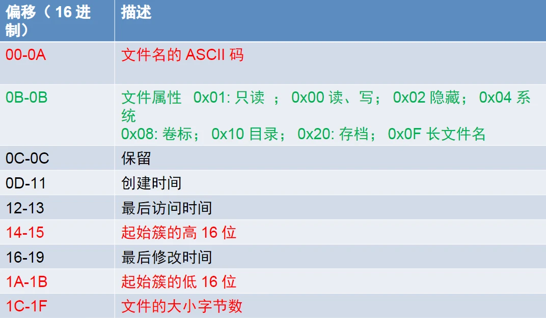 红色表示的是起始簇的高 16 位,橙色的是起始簇的低 16 位
